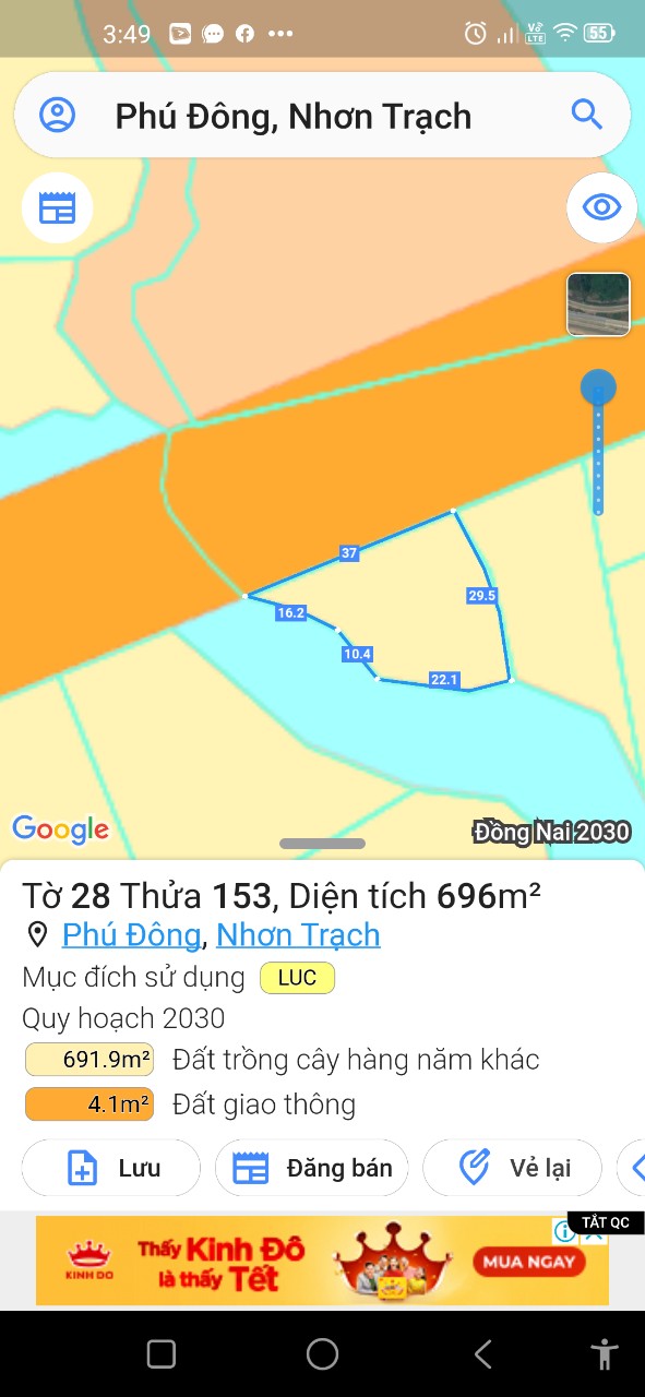 Diện tích : 696 m2